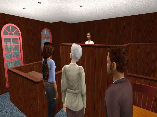 Bee still hates Jack, after two years and completing her anger management.  I had them both come to the courthouse, to see how they’d interact after having anger management and the passage of time.  I had Jack apologize to her, and her apologize to Jack, but when left to her own choices, Bee had queued up to slap Jack.