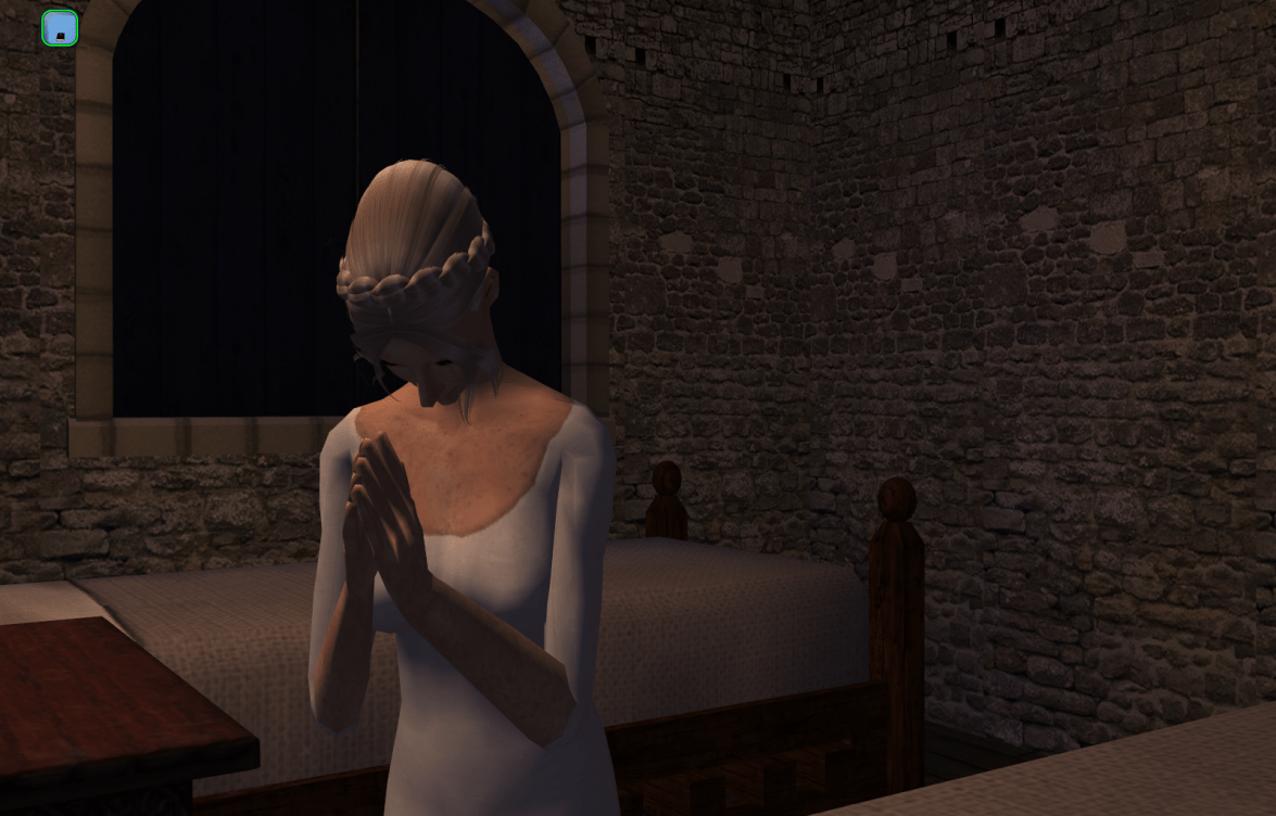 In a room separated from the main building, is the dormitory for the sisters.  One of the Squire’s family who has taken holy orders is going to be the Abbess of the Almshouse.  Millicent takes her conversion to the faith of the Allfather, and her role as gardener, seriously.