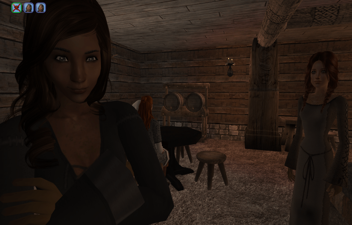 I really appreciate your links to the skins and I think the fact that they are between Maxis match and realistic, and have minimal make-up, are two of the things I love about them. The lips have a pretty color and sheen and they are not too shiny or too dull. They really are beautiful. The darkest ones are nice too but it seems so hard to see the sims’ features I haven’t used the darkest ones on a playable sim. There’s something different about the very dark skins from real life – people I know with deep, deep pigmented skin you can still see their features, unlike the sims. Part of it is that the lighting is so low inside in a medieval game.