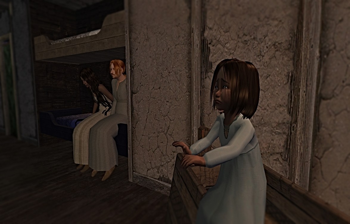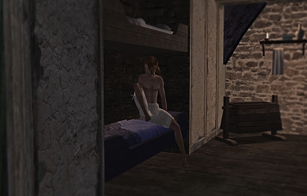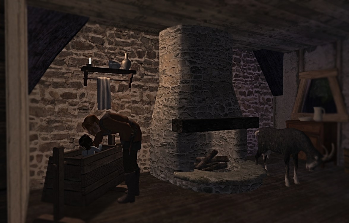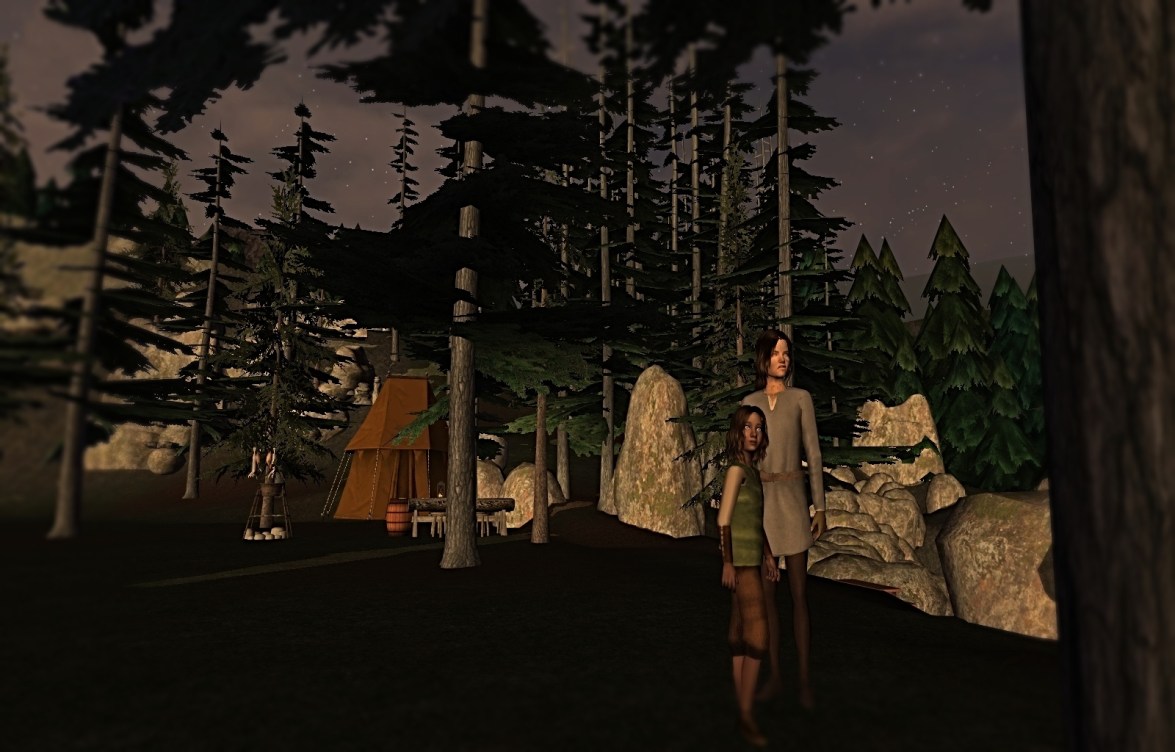 Rhett woke in the wee hours to prepare to go into the forest to gather wood to sell. The nanny seemed ok for now, and he didn’t really know what to do with it. He woke Ralf, who would help him in the forest, and said goodbye to baby Idonae.