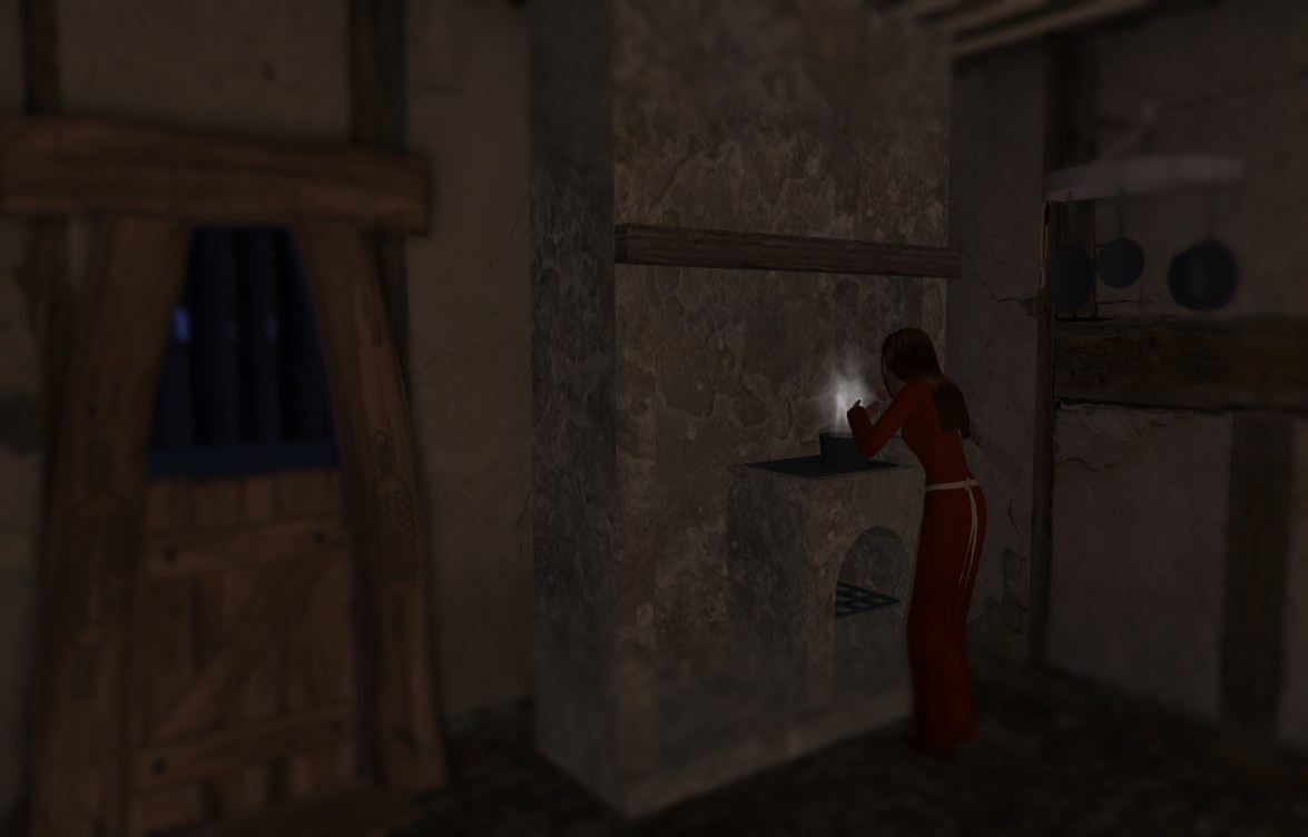 Early the next morning, in their home workshop, Lubbert and Justis discussed the crafting to be done, and the running of the shop. There were hours remaining till dawn, and they decided to work in their home workshop until breakfast. Justis would begin building up the stock of wooden toys while Lubbert created jack-in-the-box toys. Meanwhile, Karin worked on the sewing and later, would prepare breakfast.