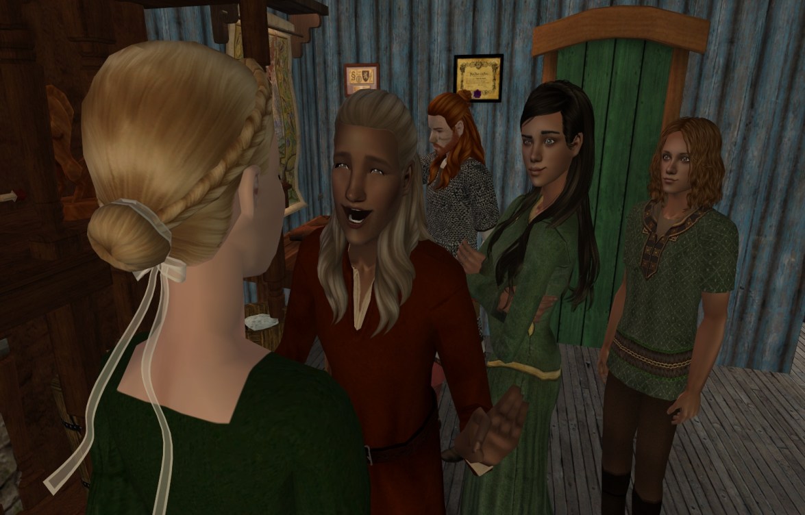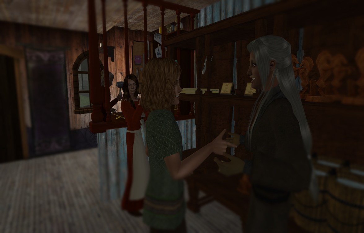 But the children quickly put away the pillows when they saw their dad come back in with Leonid Stroganov, who had negotiated their move to Ayre and headed up the merchants’ guild, with Giles Porter. Leonid was checking in with their father to see how the business fared in it’s first season, and was not displeased that the family already had several happy customers and a steady flow of coins into the business. Lubbert told Leonid that he estimated they were on track to pay their tithe, rent, tax, business license, and their guild fee this summer. The seasonal guild fee would be 5% of earnings, Leonid reminded Lubbert.
