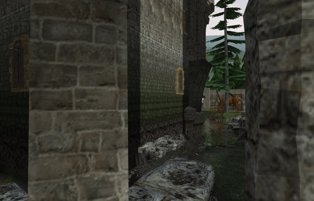 The main entrance to the Keep enters into the barbican, which takes the guests to the Keep through a defensible turn before they enter the main cell block.