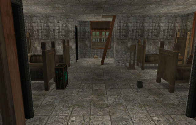 Another room on the barracks level, with extra straw to add to bedding or spread on the floor.