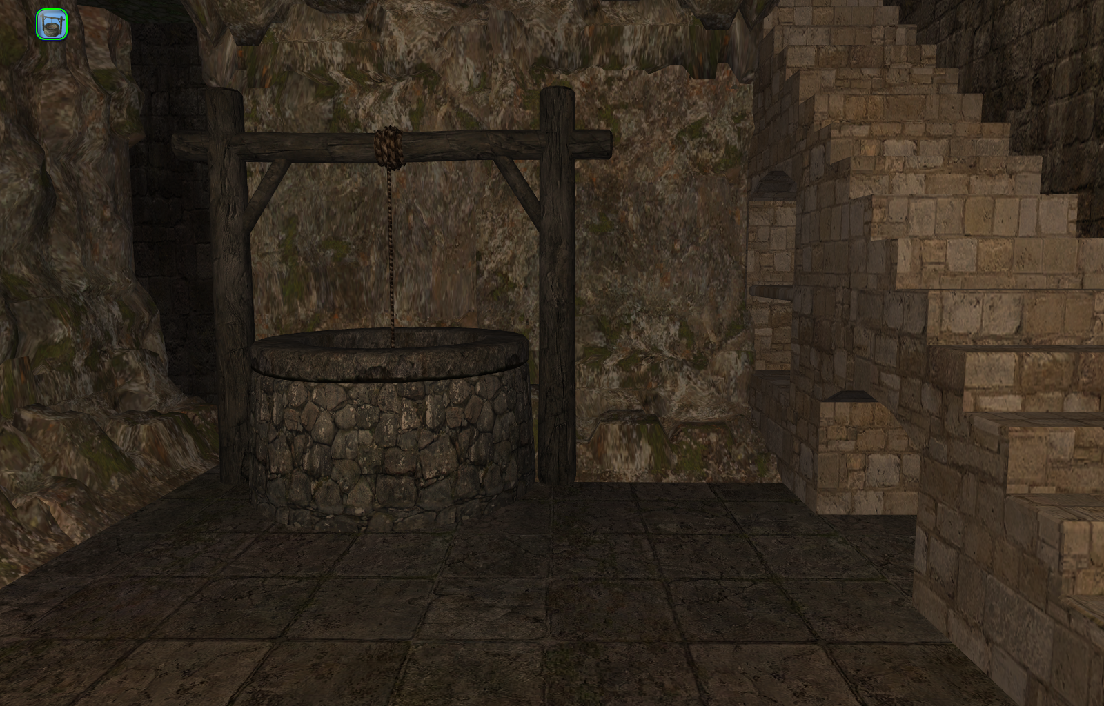 And another view of the area just outside the cells. The stairs in the floor lead to the lowest level, the underground dungeon, where there is a cistern so that during a seige, water can be supplied to the Keep.