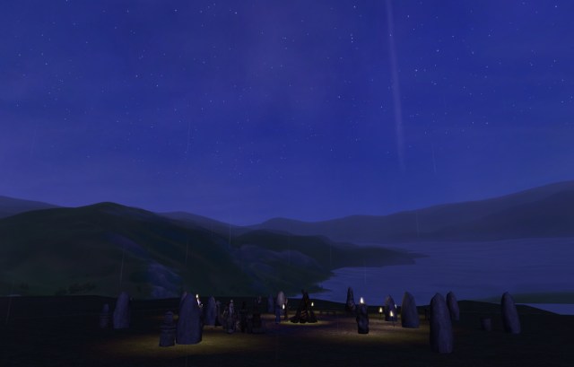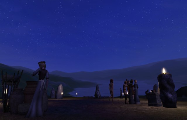 On the evening of the summer solstice, the family went to the Henge to celebrate with the other followers of the goddess. As the sun set, a warm rain began to fall. Bentley greeted Giles, his new brother-in-law, who said he would not stay all night if the rain was going to continue.