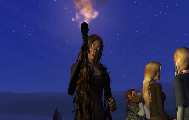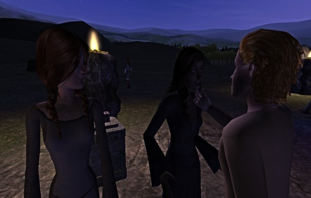 Daralis’ betrothed, James, joined the group. The roaring fire dried their clothing and hair as they basked in the light and warmth.