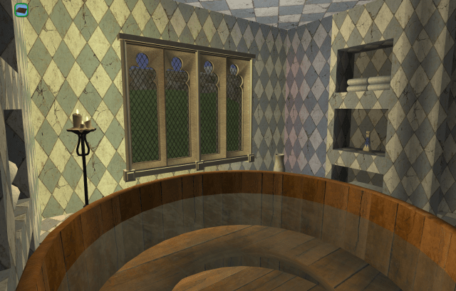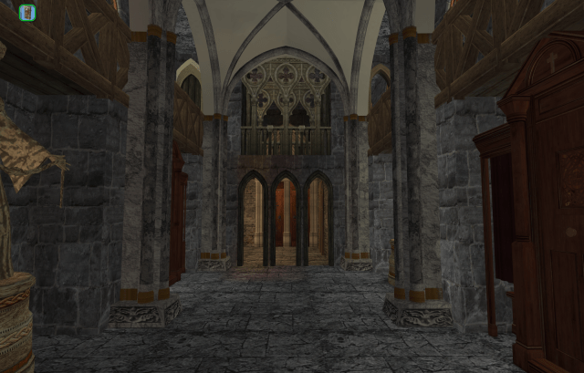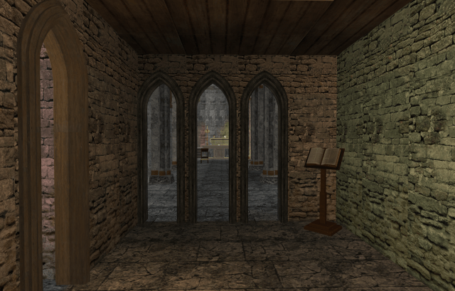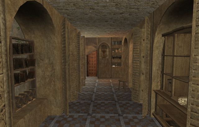 This is the Scriptorium and Reliquary. It is entered under the stairwell from the inner courtyard, or from the Chapter House.