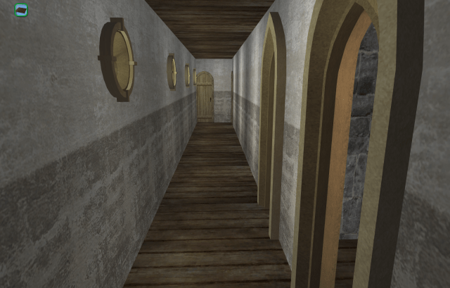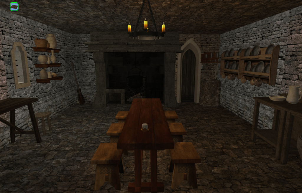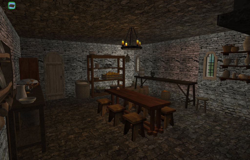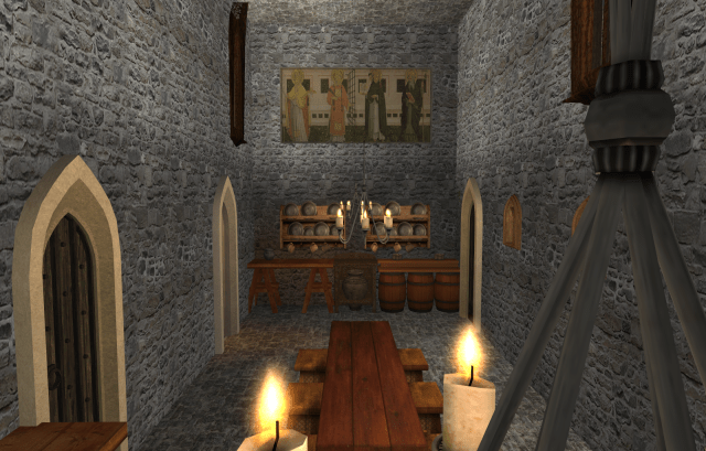 The Larder. The simpler door leads to Sister Emmaline’s quarters. The stone arched door leads to the Refectory.