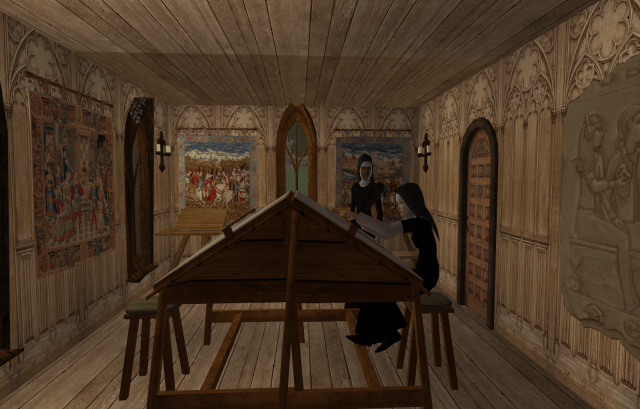 1. Maisie, I was so excited to use those arched columns in the cloister! And it was interesting with the random rolls for the Abbess, Prioress, the novitiate, and the lay nun. Most of them were not the personalities I would have probably chosen, which makes it much more interesting. So glad you enjoy seeing the tours; I love creating them 🙂 and of course, it makes it all even better having readers I know will be interested.